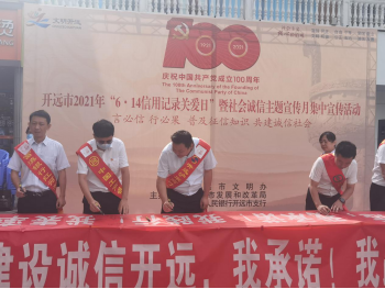 2021年6月14日是我国第14个“信用记录关爱日”,为进一步普及征信知识,引导社会公众准确认识征信,提高信用意识和维权意识,我行参加了开远市社会信用体系建设部门联席会议办公室组织的“6.14信用记录关爱日”暨社会诚信主题宣传月的集中宣传活动。通过活动现场发放宣传折页,现场讲解等多种形式普及征信知识,引导广大客户了解和关爱自身信用情况。
