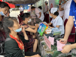 在义诊现场,医务人员认真为老年人量血压、测血糖,为他们检查病情并详细询问老人们的身体状况,耐心细致的分析病情,讲解卫生保健知识、注意事项、饮食安全、合理用药等卫生常识,认真解答老人们关于常见病、多发病的预防诊治及愈后疑难问题。现场前来就诊的患者络绎不绝,问诊、检查、诊断、宣教、量血压等义诊工作有条不紊的进行着。